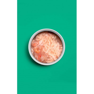 Un manjar que aúna los ingredientes que nuestros felinos adoran, una deliciosa receta rica en proteínas, 100% natural y preparada con filetes de pechuga de pollo y gambas frescas.