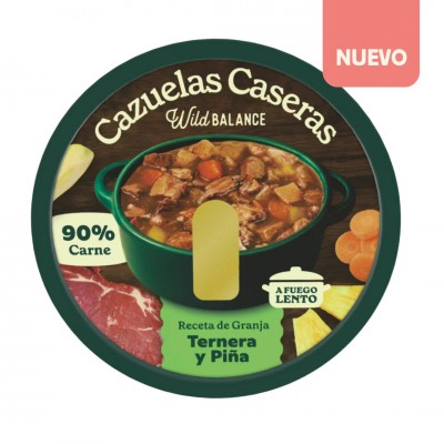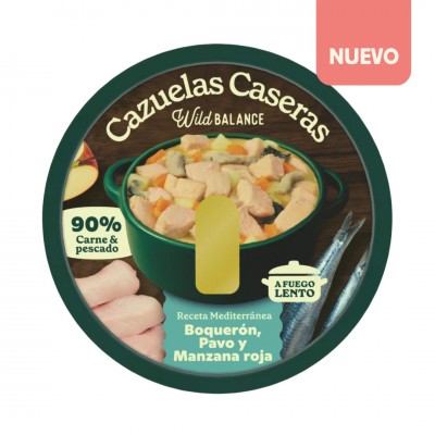 Ingredientes: 90% Carne de cerdo en su salsa, 5% Manzana verde, 2% Calabaza, 1% Guisante, 1% Especias (Pimentón, Cúrcuma y Salvia)1% Vitaminas y Minerales