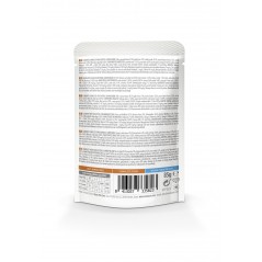 COMPOSICIÓN: Pollo 89,5% (pollo preparado en fresco 74%, caldo de pollo 15,5%). Pescado blanco preparado en fresco 7,5%. Aceite de pescado 0,5%. Minerales. Alga kelp 0,02%.