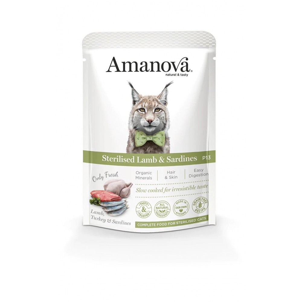 Amanova Pouches Cordero y Sardinas. Especial Gatos Esterilizados