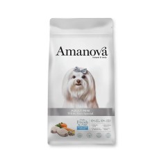 Amanova Adult Mini White Hair Special es un alimento completo y natural para perros adultos de raza pequeña con pelaje blanco o claro. Su fórmula exclusiva combina pescado blanco fresco como única fuente de proteína animal, ofreciendo una nutrición de alta calidad que ayuda a proteger la piel sensible y mantener un pelo sano y luminoso.