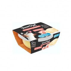 Productos lácteos fermentados (Yogur sin lactosa) 93,8%, almidón de maíz, pectina, cúrcuma longa. Aditivos: Aromatizante de tartar de salmón 40 mg/kg y Aditivo nutricional/kg: Vitamina E